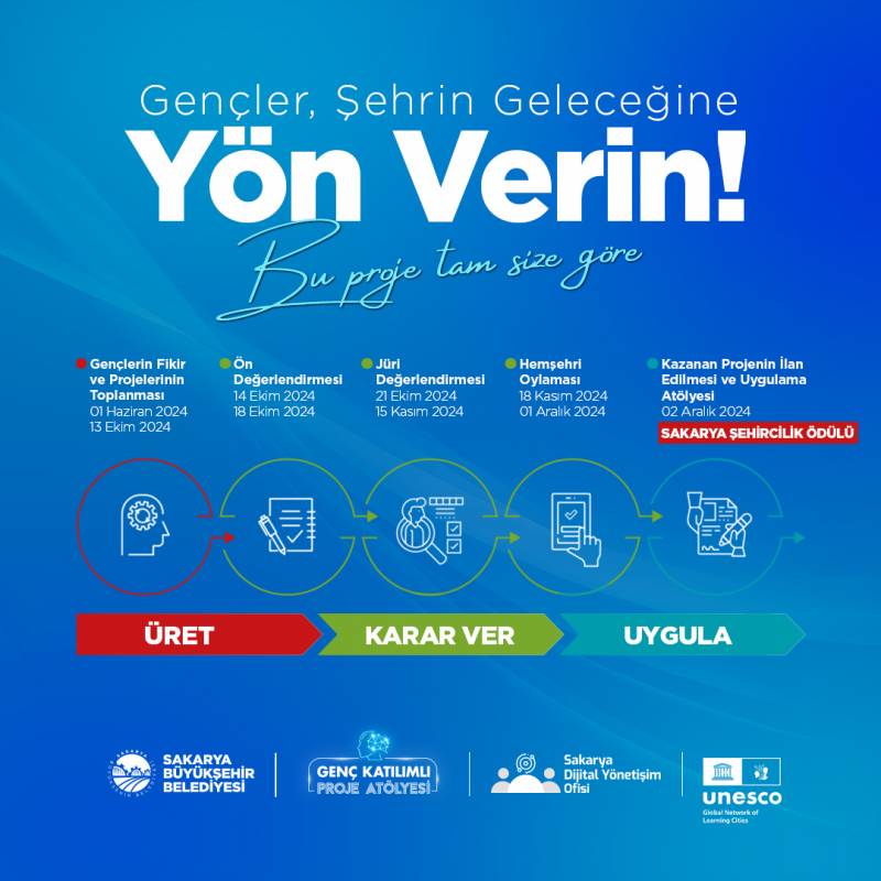 Sakarya Büyükşehir Belediyesi, Strateji Geliştirme Dairesi Başkanlığı tarafından yürütülen Sakarya Dijital Ofisi çatısı altında Genç Katılımlı Proje Atölyesi 2024 Fikir Yarışması gerçekleştirilmektedir. Genç Katılımlı Proje Atölyesi ile gençlerin şehrin geleceğine dair fikir geliştirip projelendirerek karar verme süreçlerine dâhil olması amaçlanmaktadır. Fikir Yarışmasında hemşehri oylamasının ardından birinciliğe layık görülen projeye “Sakarya Şehircilik Ödülü”, hemşehri oylamasına