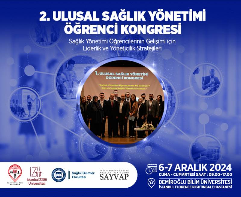 06-07 Aralık 2024 tarihlerinde, Demiroğlu Bilim Üniversitesi Sağlık Bilimleri Fakültesi Sağlık Yönetimi Bölümü ev sahipliğinde, Marmara Üniversitesi, İstanbul Sabahattin Zaim Üniversitesi ve Sağlık Yöneticileri ve Adayları Platformu (SAYVAP) işbirliğinde, İstanbul Florence Nightingale Hastanesi Konferans Salonunda düzenlenecek olan "Sağlık Yönetimi Öğrencilerinin Gelişimi için Liderlik ve Yöneticilik Stratejileri" temalı 2. Ulusal Öğrenci Kongresine ilişkin kongre programı ve afiş ekte gönderilmiştir.