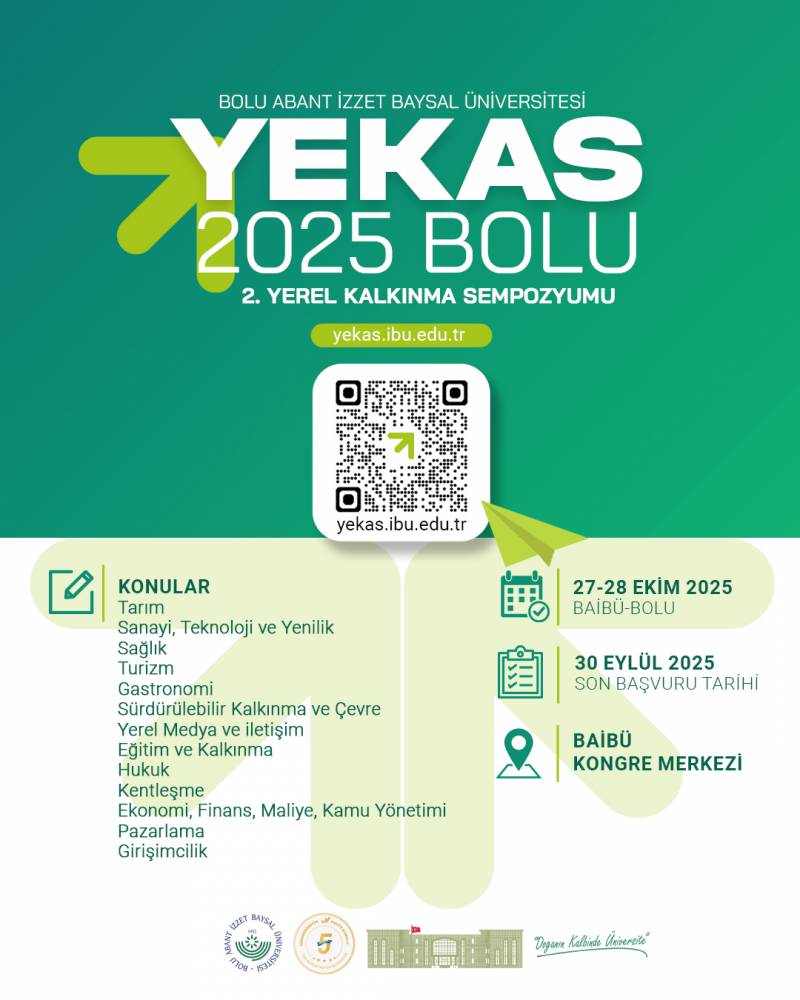Bolu Abant İzzet Baysal Üniversitesi ve Bolu Valiliği öncülüğünde, Ekonomik ve Sosyal Araştırmalar Uygulama ve Araştırma Merkezi (ESAM) koordinasyonunda 27-28 Ekim 2025 tarihlerinde "2. Yerel Kalkınma Sempozyumu" düzenlenecektir.