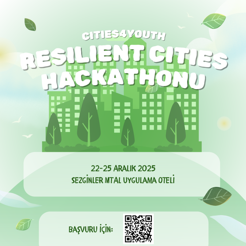 Türkiye Ulusal Ajansı tarafından Erasmus+ KA154 gençlik katılımı programı kapsamında desteklenen Sakarya Valiliği tarafından koordine edilen 20243TR01KA154YOU 000279592 numaralı ve "Resilient Cities and Sustainable Future: Youngsters Discuss the Future of the Cities” başlıklı projenin yaygınlaştırma faaliyetleri kapsamında 2225 Aralık 2025 tarihlerinde Sakarya ilinde Hackaton etkinliği düzenlenecektir. Hackaton etkinliği ile Erasmus+ projeleri kapsamında edinilen bilgi ve deneyimlerin paylaşılması, gençlerin dirençli sürdürülebilir şehircilik konularında farkındalıklarının ve proje üretme becerilerinin artırılması amaçlanmaktadır.