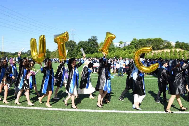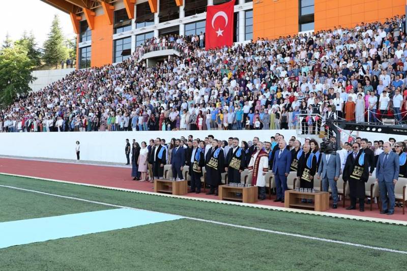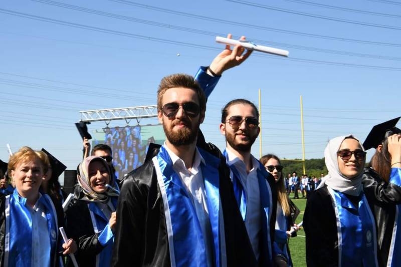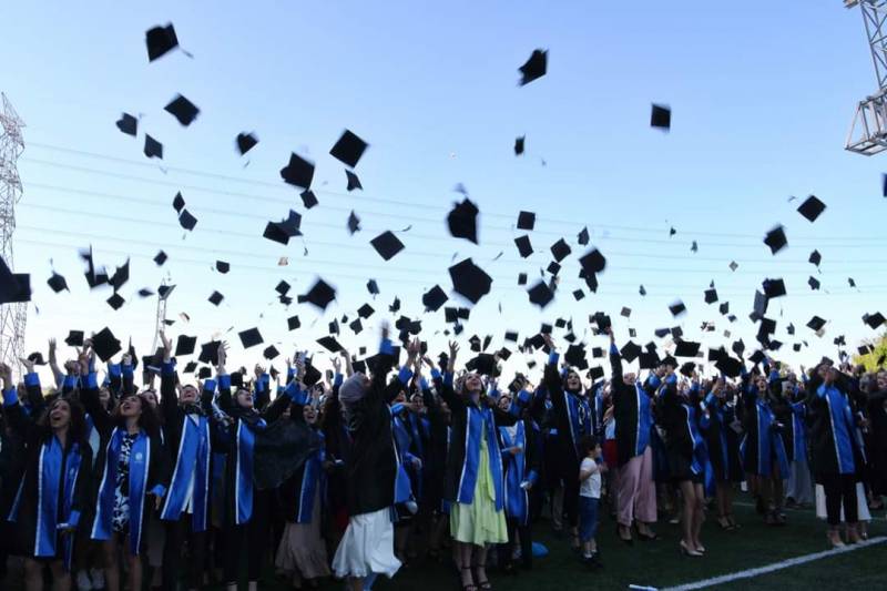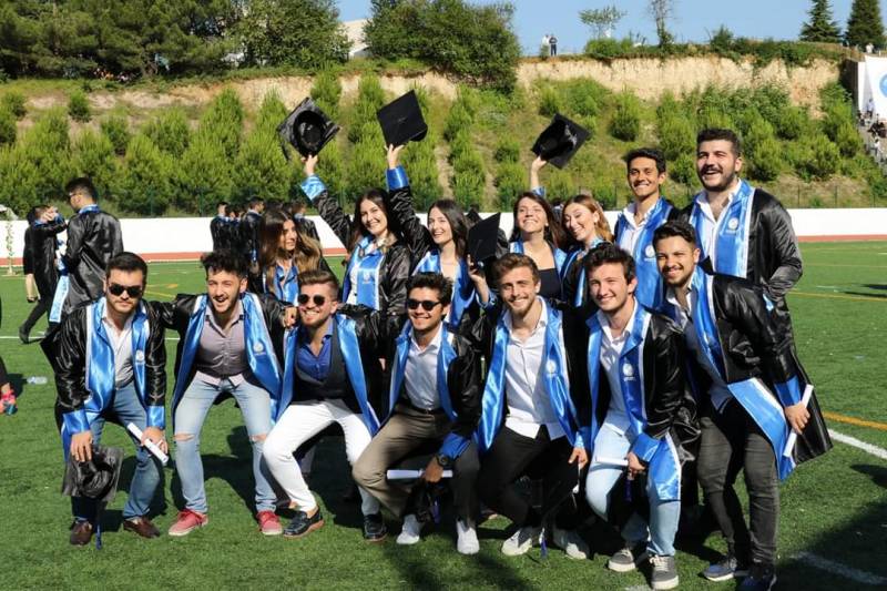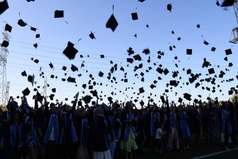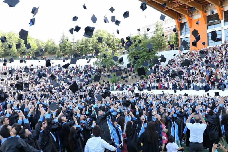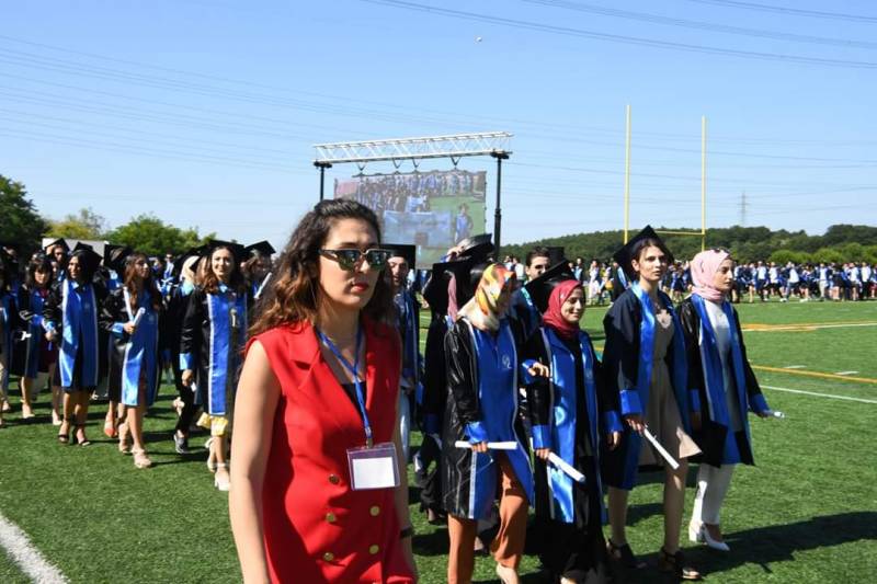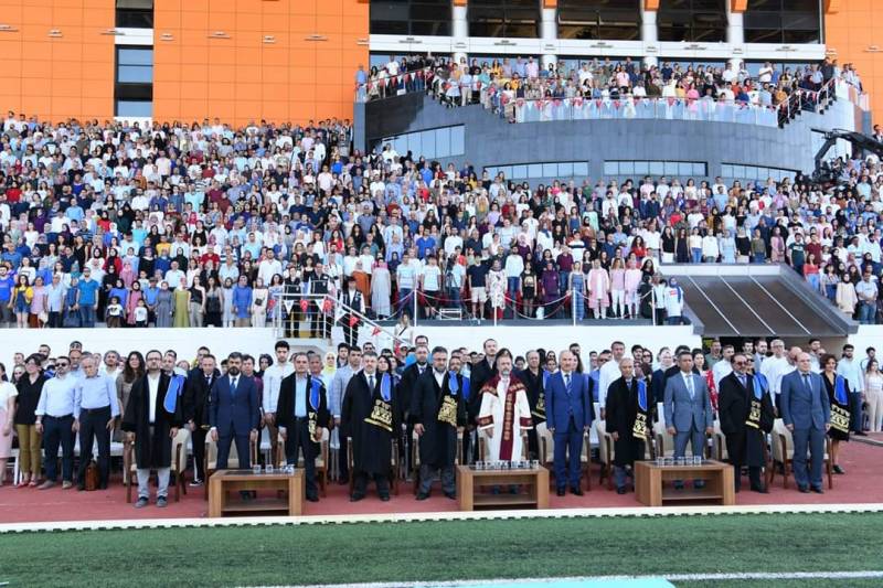 Renkli görüntülere sahne olan mezuniyet töreni, öğrencilerin keplerini havaya atmaları ile sona erdi.