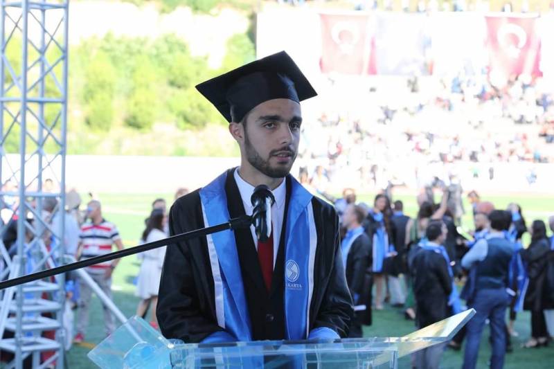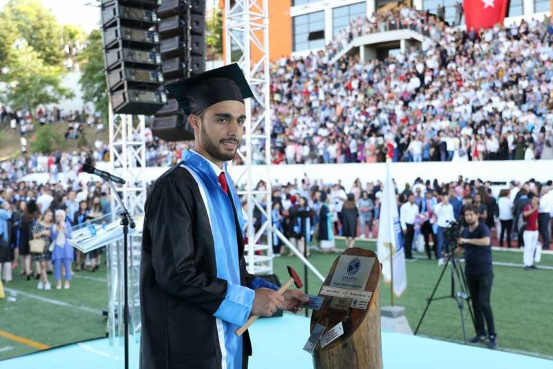 Törende protokol konuşmalarının ardından dereceye giren öğrenciler, mezuniyet kütüğüne isimliklerini çaktı ve tüm mezunlar adına birer konuşma gerçekleştirdi. İşletme Fakültesi birincileri İnsan Kaynakları Yönetimi Bölümünden Ilkın Huseynov ve Uluslararası Ticaret Bölümünden İrem Aksoy, ödüllerini ve plaketlerini protokolün elinden aldı.